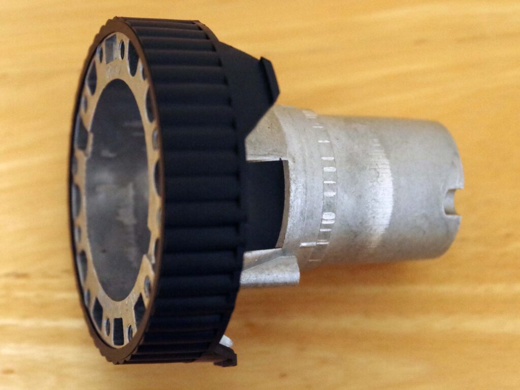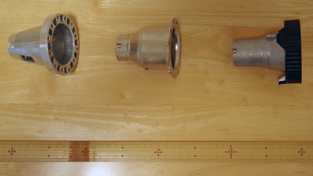 - Особенности: конструкция, пригодная для массового производства методом литья под давлением. Несмотря на впечатление точности, толстостенная и тяжёлая для обеспечения жёсткости.