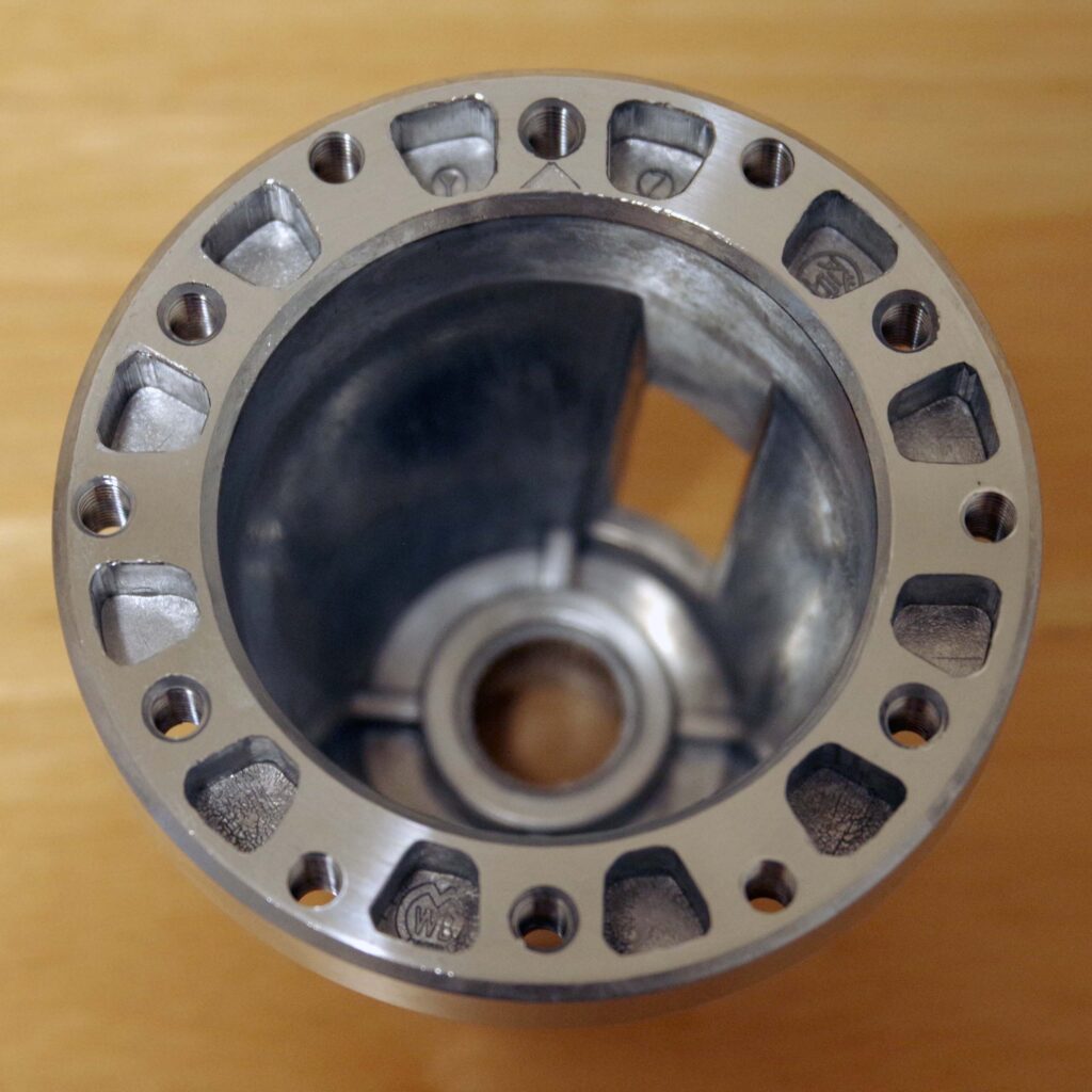 Ступица Daikei, хотя и изготовлена из стали, оказалась самой лёгкой благодаря продуманной конструкции и обработке, использующей преимущества прочности материала. С другой стороны, ступица Works Bell оказалась самой тяжёлой, несмотря на алюминиевое литьё под давлением — вся конструкция выполнена толстостенной и массивной. Ещё интереснее ступица HKB SPORTS. Она также изготовлена из литого алюминия, но её проработанная конструкция и минимальная механическая обработка делают её удивительно лёгкой — примерно вдвое легче, чем Works Bell. Иными словами, дело не столько в разнице материалов, сколько в разнице конструкторской философии.