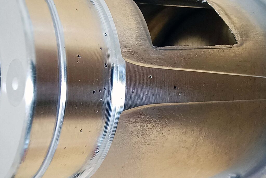 - В зоне механической обработки видны литейные раковины диаметром около 0,5 мм.